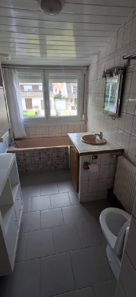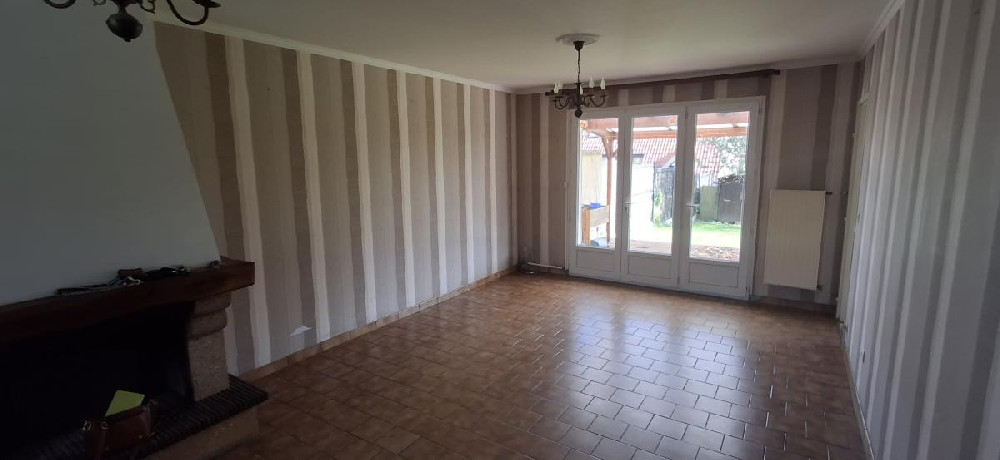 Maison semi-individuelle de lotissement de 1974 de 101 m2 habitable environ comprenant un hall d'entrée, WC, salon-séjour avec cheminée feu de bois, cuisine.
